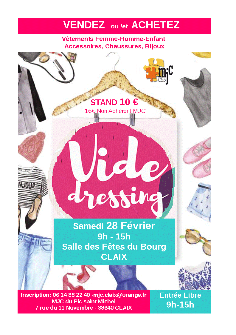 Stand pour le vide dressing du samedi 28 février à la salle des fêtes du Bourg :