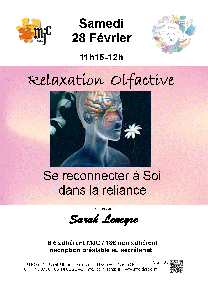 -11h15-12h : Relaxation olfactive. adhérent : 15€ / non adhérent : 20€
